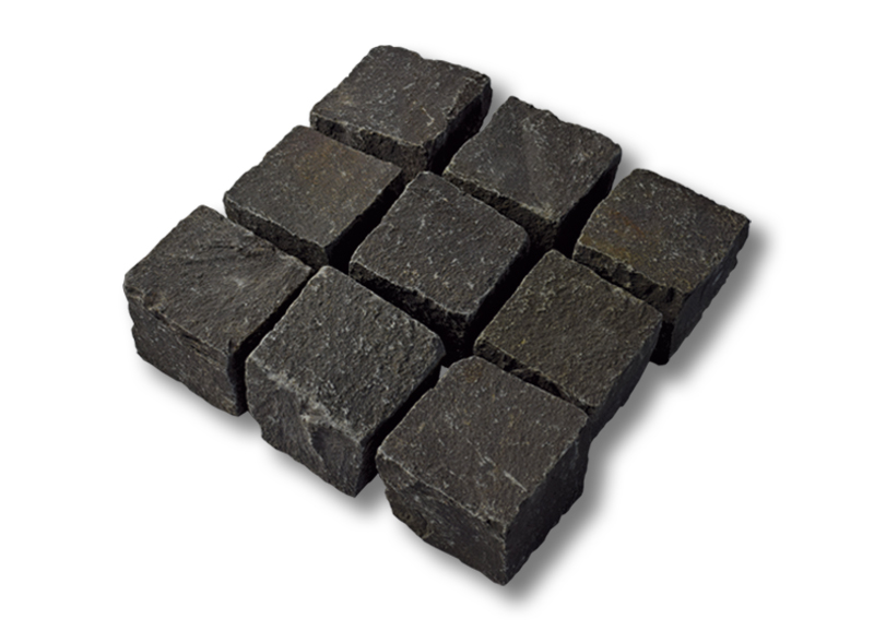 Omschrijving Basalt kinderkoppen 10x10x20 cm rustiek losgestort