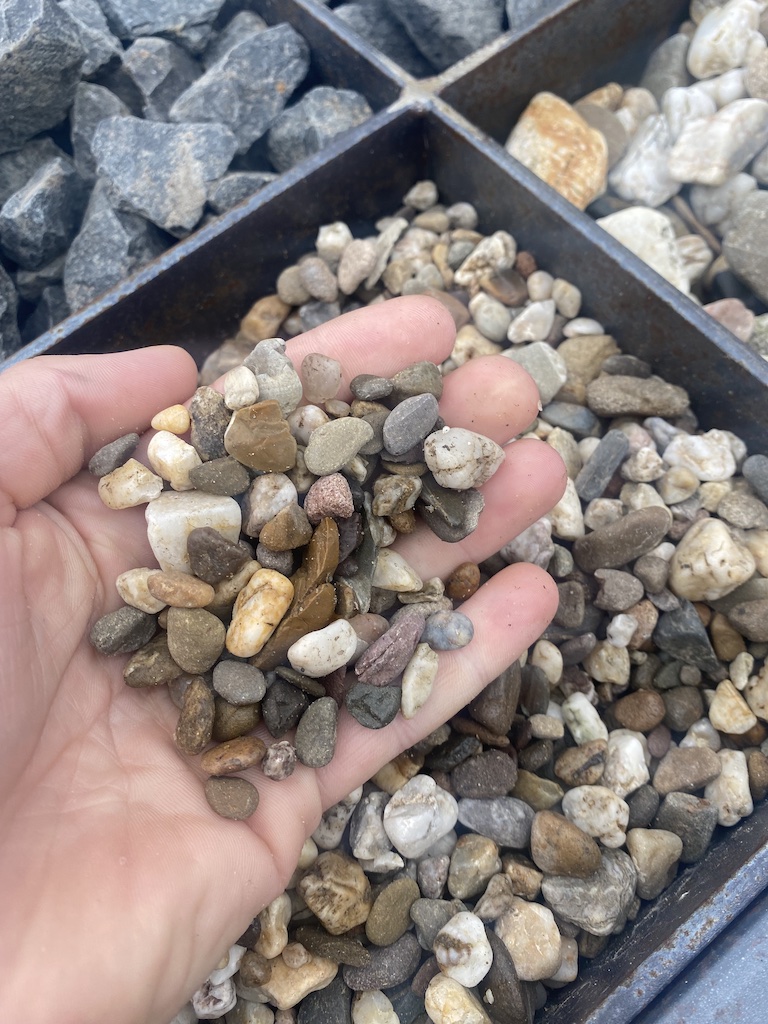 Boeren grind is mooi natuurlijk grind. Boerengrind word ook wel Spramex grind en maasgrind genoemd.