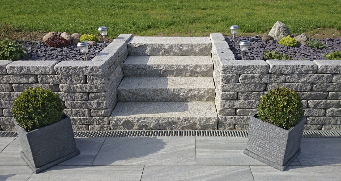 Graniwall grey rockface 40x16x8 cm. 2 ruwe zijdes