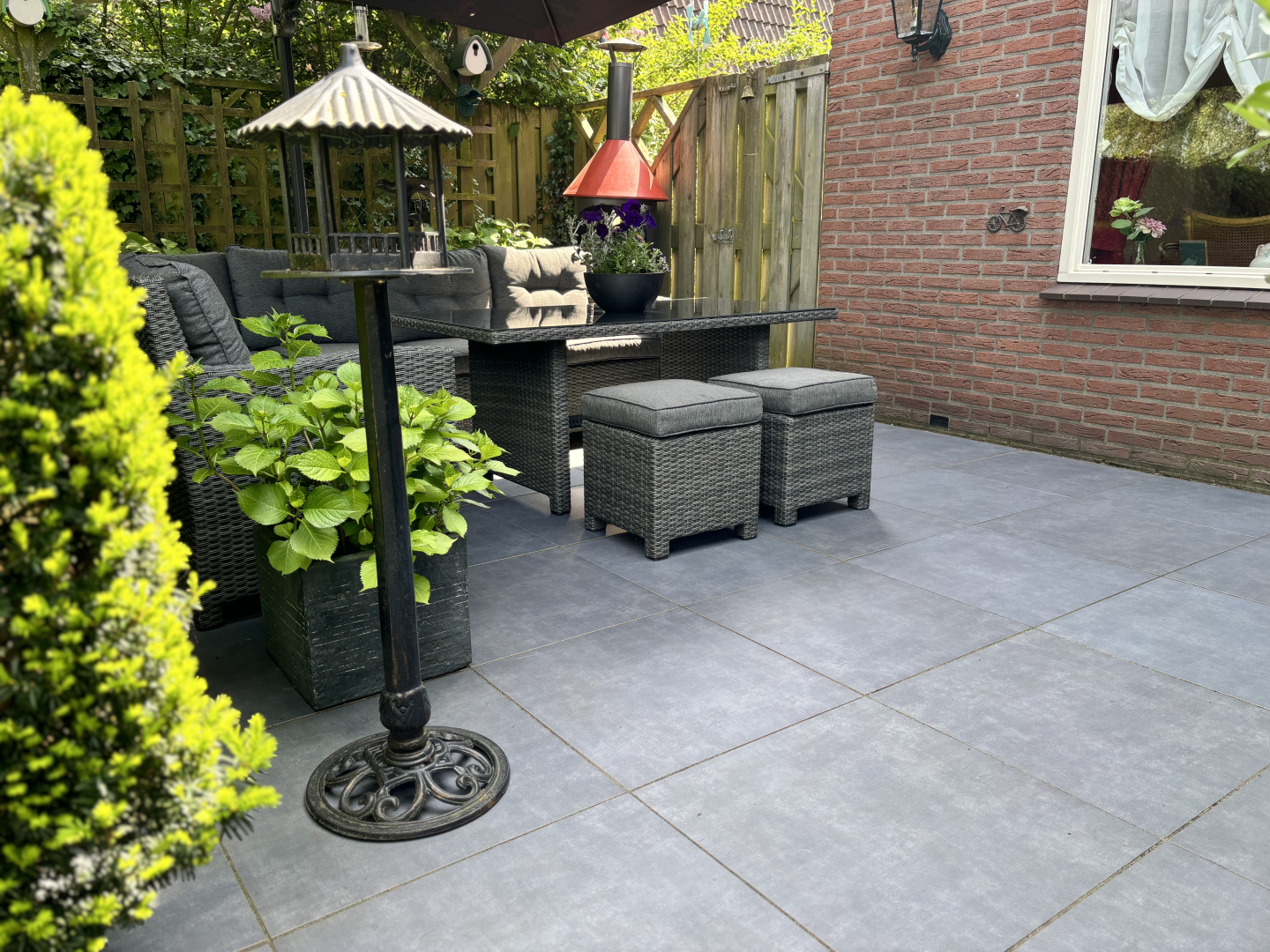 Geopremium 60x60x4 Hase: Deze tegels bieden een strakke en moderne uitstraling, perfect voor een eigentijdse tuin. De subtiele kleurnuances zorgen voor een tijdloos design dat goed samengaat met verschillende tuinmeubelen.