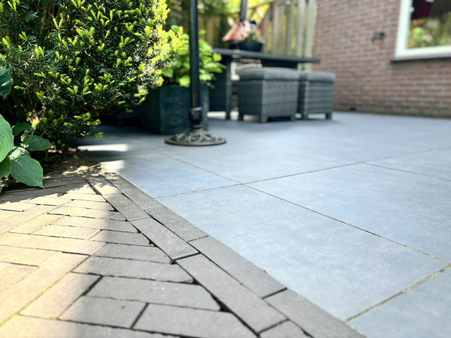 Geopremium 60x60x4 Hase: Deze tegels bieden een strakke en moderne uitstraling, perfect voor een eigentijdse tuin. De subtiele kleurnuances zorgen voor een tijdloos design dat goed samengaat met verschillende tuinmeubelen.