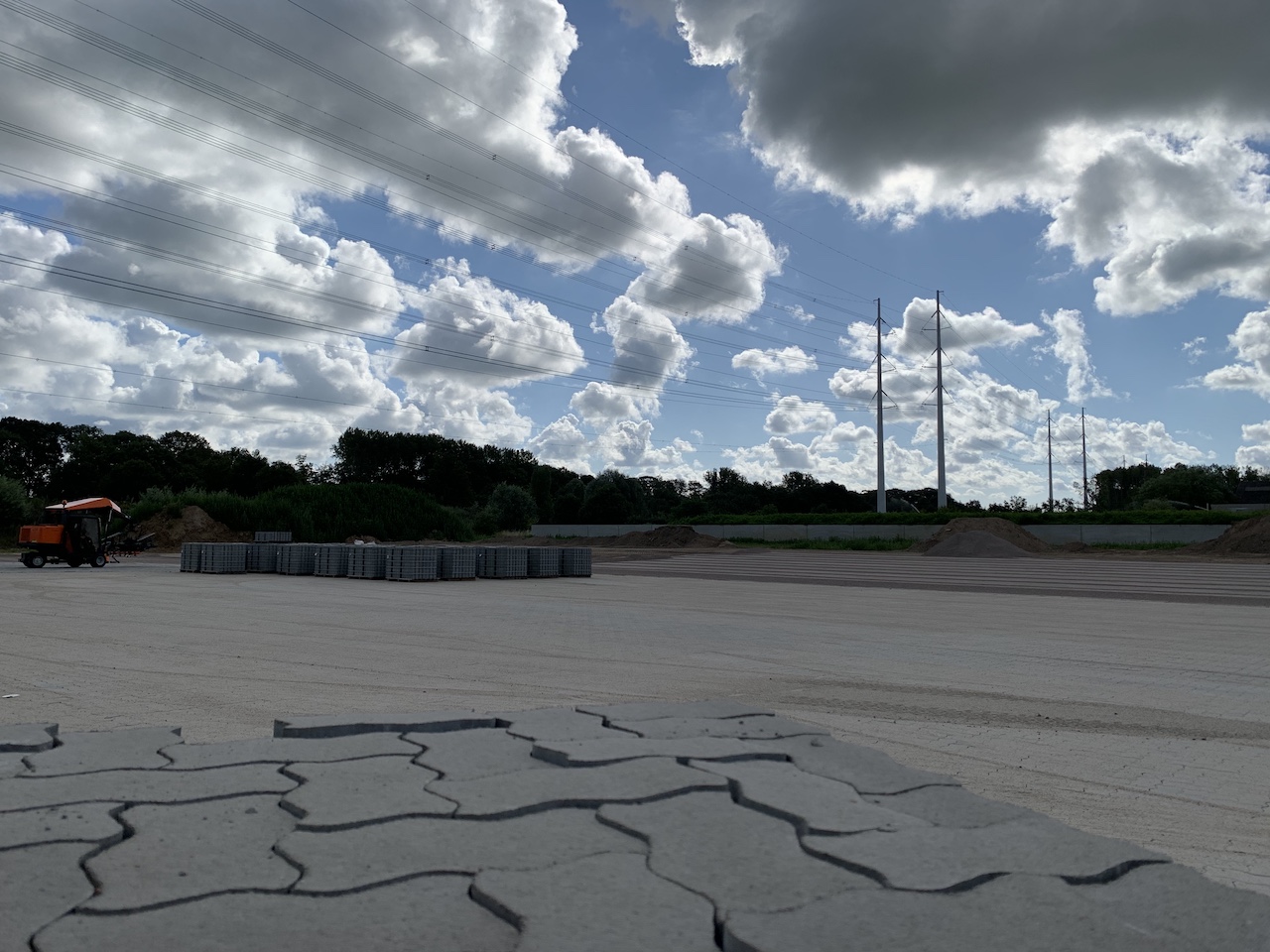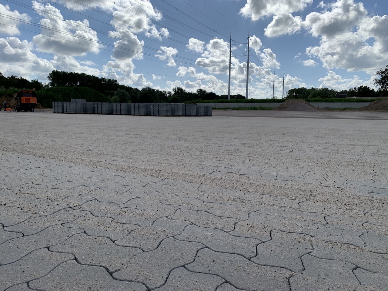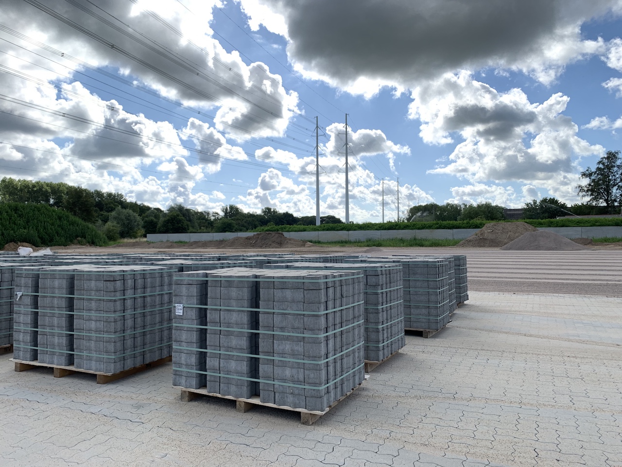 Op dit gronddepot hebben wij de Sinpro 8 cm zonder facet geleverd. Deze steen heeft een functionele vormgeving en is duurzaam. Door dat er is gekozen voor een steen zonder facet is het terrein makkelijk schoon te schuiven. Op terreinen en wegen die het zwaar te verduren hebben is de Sinpro een geschikte steen bijvoorbeeld bij het verharden van busstations, haven-, industrie- en militaire terreinen.