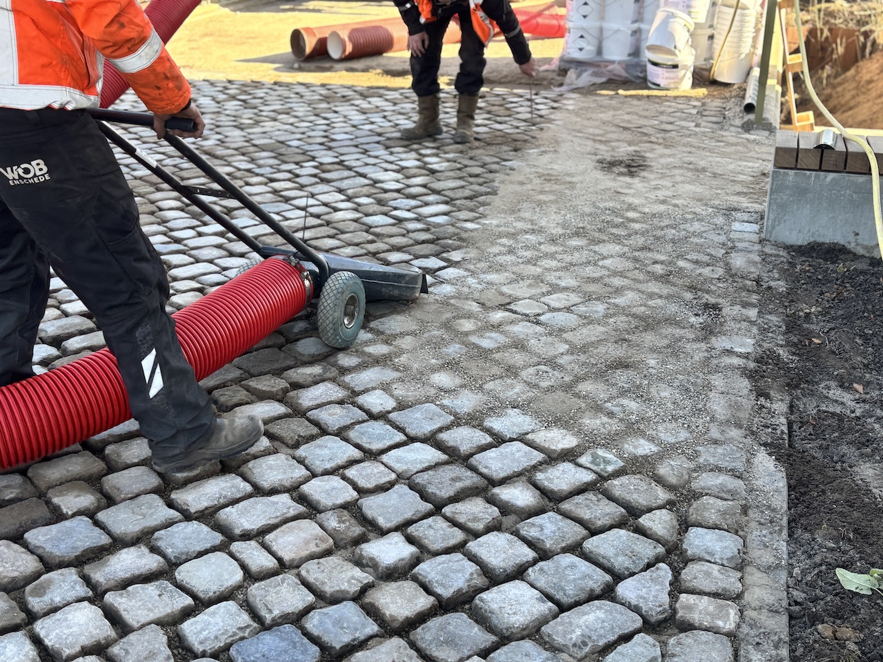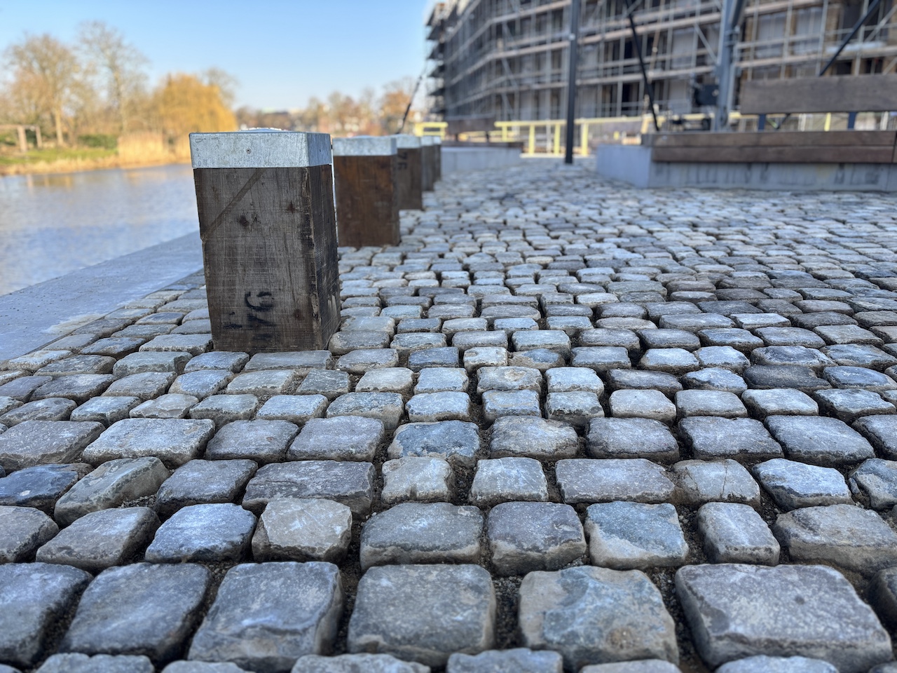 In gemeente Doetinchem zijn oude natuursteen kinderkoppen vakkundig hergebruikt en gevoegd langs de kade. De gemeente wil de Ijssel weer dichter bij de betrekken en dit project brengt een stukje havenhistorie terug in het straatbeeld!