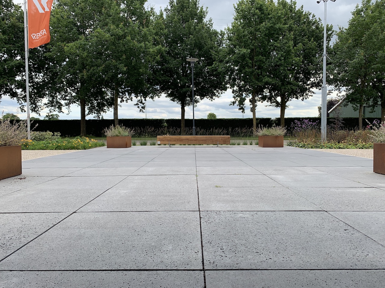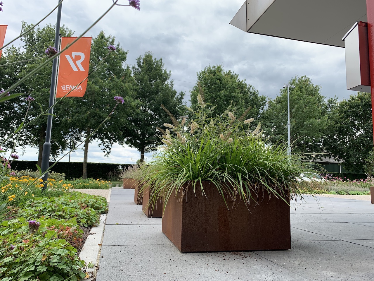 Bij Rensa hebben wij 100x100x5 Schellevis tegels antraciet en Lava split geleverd. De Schellevis tegels zijn zowel geschikt voor een moderne als de nostalgische tuin. De kleur, vorm en uitstraling van de Schellevis tegels is geschikt voor opritten, pleinen en terrassen. Lava split is een gesteente dat op verschillende manieren toegepast kan worden. Van het opvullen van een plantenbak tot het aanleggen van een looppad. Bij Rensa is gebruik gemaakt van Prairie Garden, een stabiel systeem dat weinig tot geen onkruid toelaat omdat de planten diepgeworteld zijn. De bovenste laag wordt afgedekt met Lava split. Lava spit houdt onkruid tegen en is zeer goed waterdoorlatend. Daardoor is de Prairie Garden goed bestand tegen extreme regenval en in droge periodes voorkomt het Lava spit juist uitdroging van de grond en de prairieplanten.
