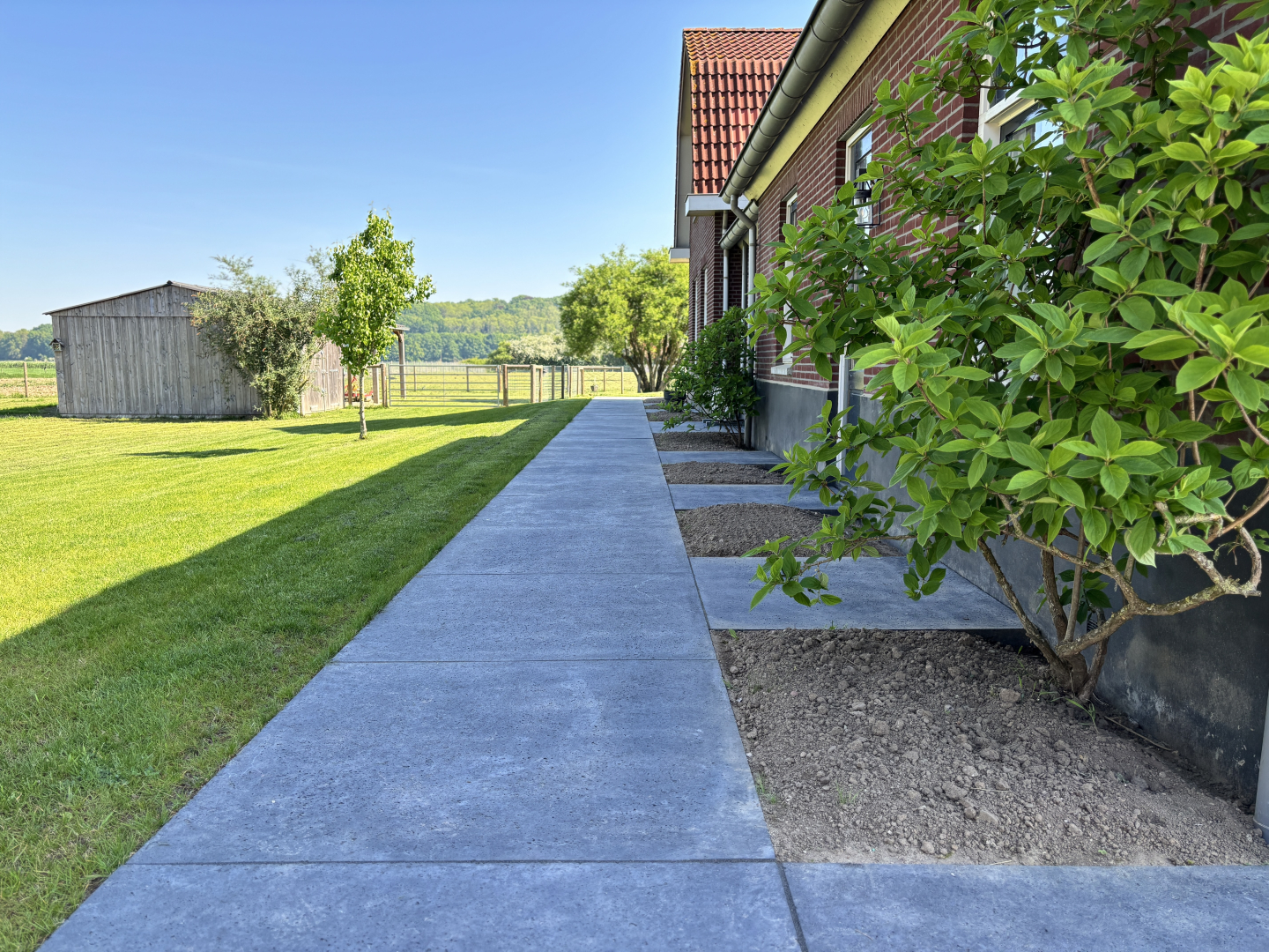 De gekozen kleuren carbon en beige vullen elkaar prachtig aan. Het resultaat? Een warme en tegelijk strakke sfeer die zowel functioneel als sfeervol is. De Oud Hollandse tegels brengen karakter en robuustheid, terwijl de keramische tegels zorgen voor een onderhoudsvriendelijk terras. De betonklinkers maken het plaatje compleet: praktisch in gebruik en een mooie match met de Oud Hollandse carbonkleur.