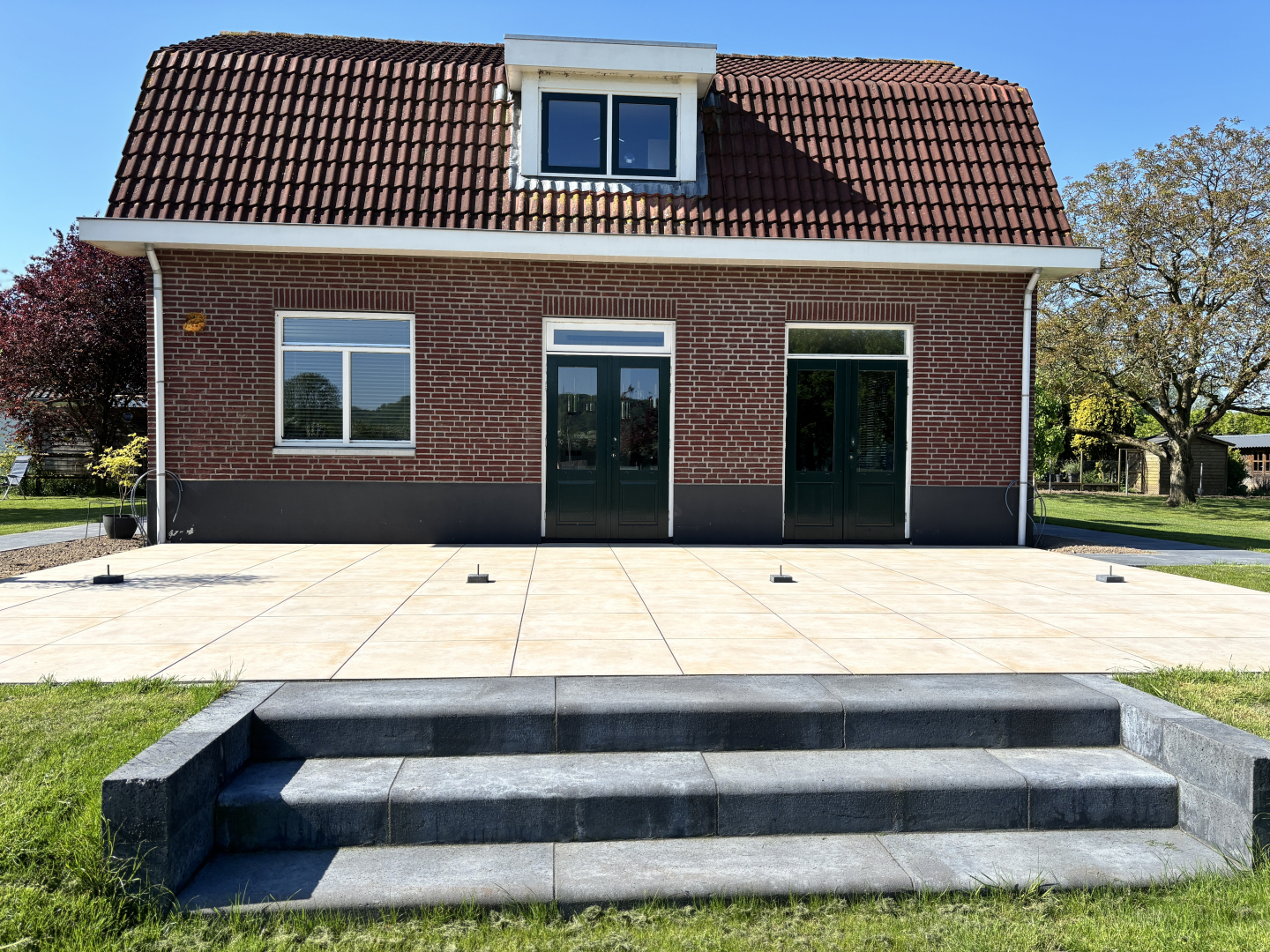 De gekozen kleuren carbon en beige vullen elkaar prachtig aan. Het resultaat? Een warme en tegelijk strakke sfeer die zowel functioneel als sfeervol is. De Oud Hollandse tegels brengen karakter en robuustheid, terwijl de keramische tegels zorgen voor een onderhoudsvriendelijk terras. De betonklinkers maken het plaatje compleet: praktisch in gebruik en een mooie match met de Oud Hollandse carbonkleur.