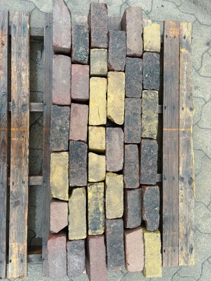 Mooie gebakken dikformaten, de eerste 2 foto's zijn voor de kleur, variabele lengte staan voor de halve 3 kwart stenen. prima in halfsteends verband te verwerken. Let op stenen hebben onder het asfalt gezeten en op de foto ziet u de onderkant van de steen.